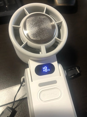 The fan comes with a USB charging cable that you can plug into any USB port, making recharging convenient and hassle-free.
